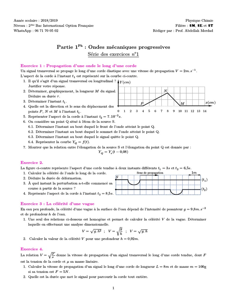 La dimension d'un milieu de propagation est le nombre minimal de coordonnées nécessaires pour repérer complètement la. Etant donné que la vitesse de compression des ondes dans l'eau pure est de 1498 m/s, quelle est la longueur d'onde d'une note de 440 hz jouée par l'instrument ? Forme avec la normale au dioptre est noté i. Onde se propageant sans déformation de son prol. Onde progressive et onde stationnaire.